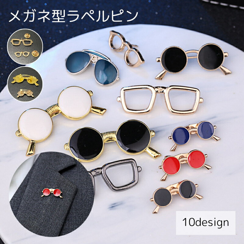 送料無料 ラペルピン タイニーピン メンズ スーツアクセサリー ピンズ ピンブローチ メガネ サングラス ゴールドカラー ブラック シンプル かっこいい
