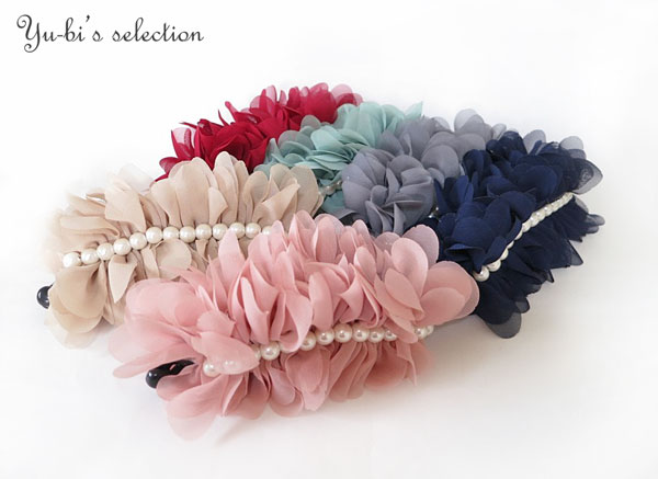 【最終処分品】【各送料無料対象外】ヘアクリップ/エレガントパールラインふんわりシフォンバナナクリップk3☆ベージュ紺ワインピンクグレー ヘアアクセ 髪飾り アレンジ オフィス ヘアスタイル スーツ 大きめ バナナクリップ【あす楽対応】【RCP】