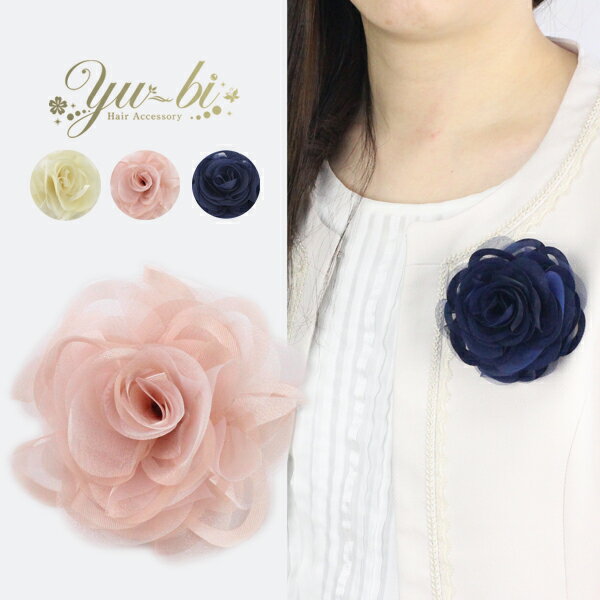 【定形外郵便OK290円】コサージュ/バイカラー オーガンジー ヘアクリップ 安全ピン c77☆ベージュ/ピンク/紺 フラワー 髪飾り 入学式 卒業式 入園式 卒園式 スーツ 結婚式 フォーマル セレモニー【あす楽対応】