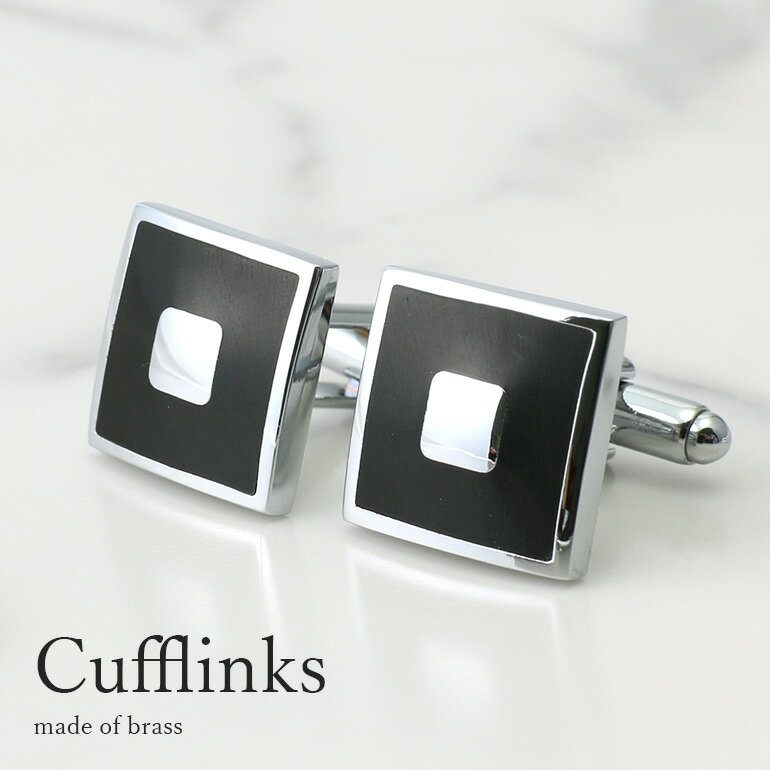 カフス カフスボタン カフリンクス シルバー ブラック 黒 スクエア シンプル メンズ アクセサリー 紳士用 ビジネス フォーマル [ ワイシャツ スーツ プレゼント ギフト 父の日 誕生日 お祝い 入学 入社 就職 ]【メール便送料無料】 [M便 1/30]