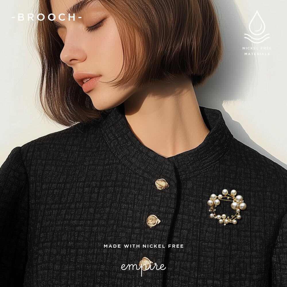 ブローチ 卒園式 卒業式 入園式 入学式 キルトピン ピン 金具 サークル 丸型 フォーマル セレモニー ママスーツ パール キュービックジルコニア ピン 華やか 大人 上品 ゴールド シルバー チャコール empire