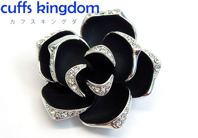 お洒落 スーツ アクセ 薔薇のブローチ 【 黒 銀 色 】 【 ブラック 花 細工 ブローチ 男女 プレゼント おしゃれ エレガント 結婚式 カフス専門店 】