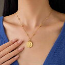 ネックレス レディース 女性用 サージカルステンレス 18Kゴールドメッキ ローマ風 抽象アート コインモチーフ ペンダント 上質 ヴィンテージ レトロ 個性的 トレンド ファッション カジュアル オフィス 通勤 万能