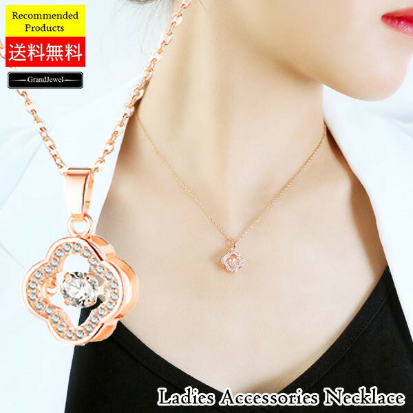 [送料無料 メール便] ネックレス フラワー 花 クローバー ピンクゴールド 金 チェーン レディース アクセサリー 首飾り 首元 お洒落 シンプル フェミニン ガーリー カジュアル セクシー 可愛い モテ系 綺麗系 お姉さん系 春 夏 秋 冬