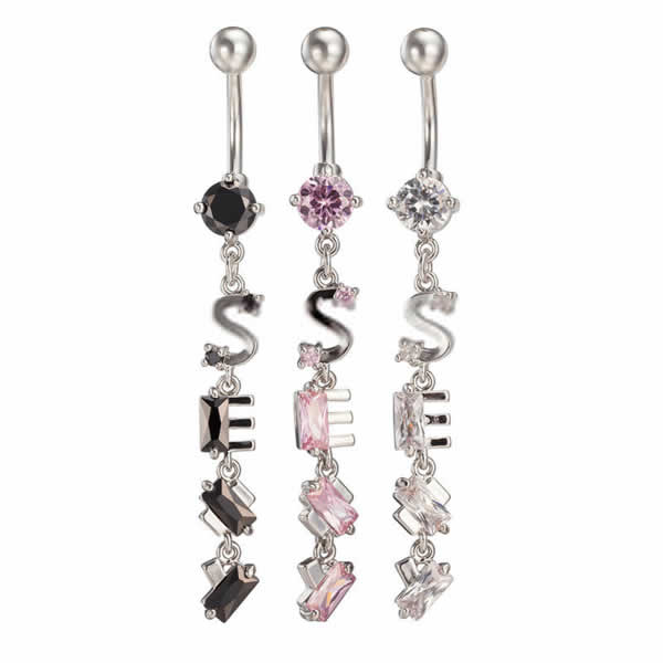 SEXY セクシービジューへそピアス 14G 14ゲージ 英語 アルファベット オモシロ メッセージ おもしろ ジルコニア クリスタル ラインストーン ヘソピアス 臍ピアス ボディピアス サージカルステンレス ネイブル ボディーピアス レディース へそピ ぶら下がり 揺れる チャーム