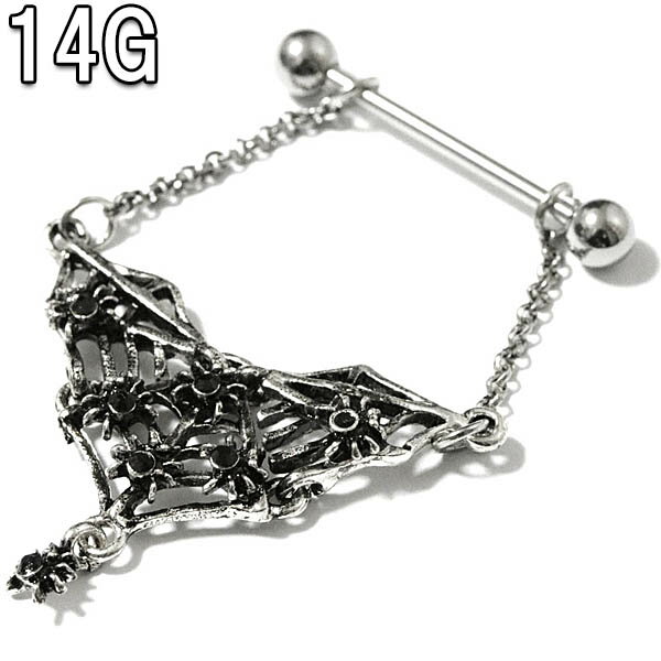 ボディピアス 14G 蜘蛛の巣チェーンハンガー ニップルバーベル BPNP-08 sexy 乳首 ボディーピアス 316Lサージカルステンレス シールド フィーメイルニップル メイルニップル ゴシック パンク/10P05Nov16