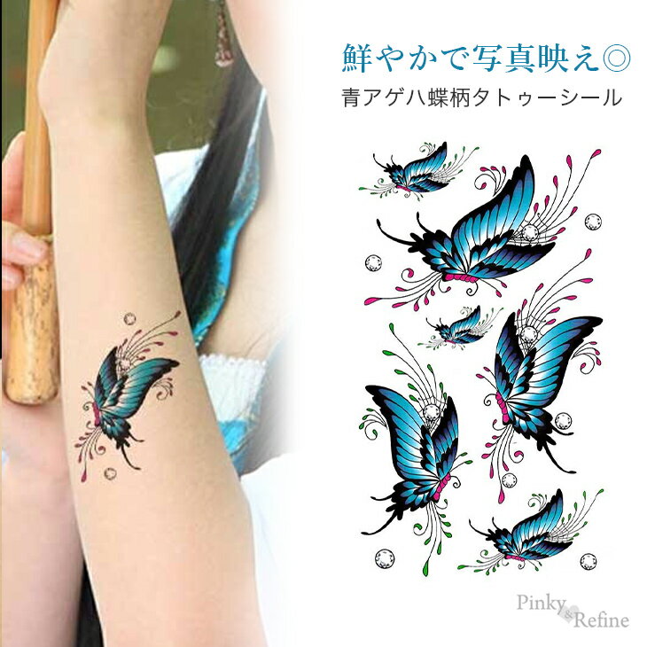 【ゆうパケット送料無料】青アゲハ蝶 タトゥーシール ボディシール 青色 紺色 アゲハ 蝶々 セクシー 転写シール 入れ墨 ハロウィン コスプレ ワンポイント ボディシール フェイクタトゥー 仮装 SNS映え TATTOO Halloween 青 水色 butterfly カッコいい 派手