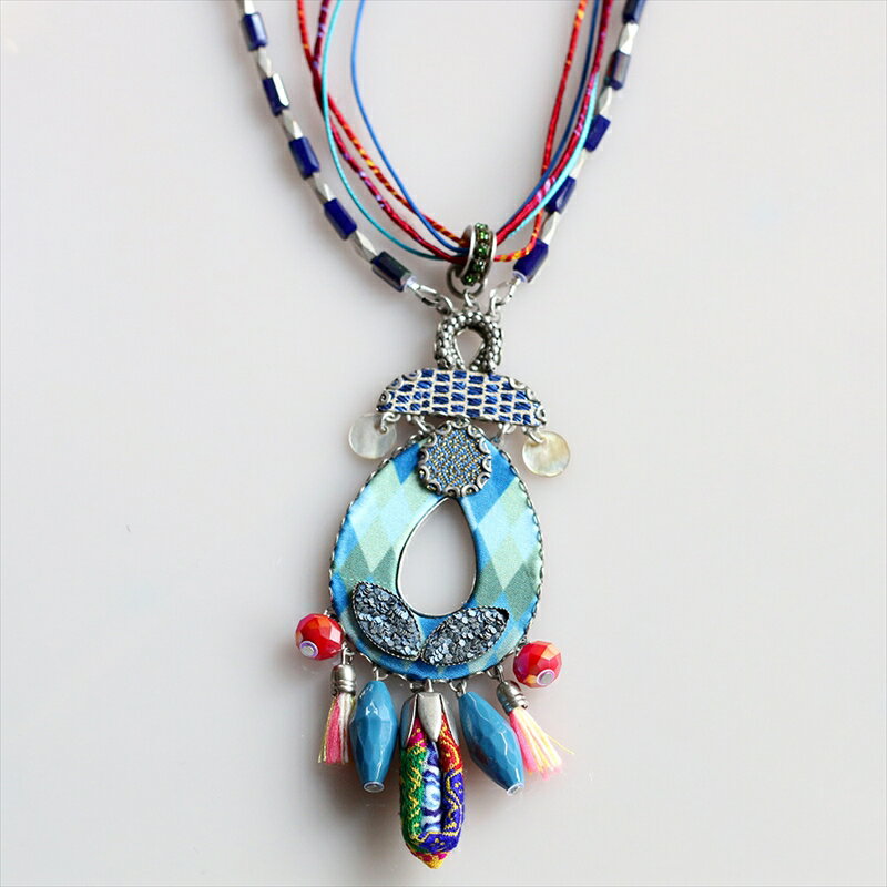 アヤラ・バー ヒップコレクション/ネックレスsorrento ソレントサイズチェーンの長さ約68cm(+9cm)材 質ガラスビーズ、真鍮、天然石、リボンコード使用色制 作イスラエルソレント、という南西イタリアに位置する町の名前のついたシリーズです。アーガイル、花柄、幾何学模様、ストライプなどの様々なパターンで、海の青色を表現していて、夏の空に映える鮮やかなネックレスです。Ayala Bar, 天然石、ビーズ、コスチュームジュエリー・アンティーク・ヴィクトリアン・アクセサリー・プレゼント・ギフト・ビーズアクセサリー・スワロフスキ・アールヌーボー・ボヘミアン・フォークロア・イスラエル・ブランド・ハリウッド・ミハエルネグリン・アールデコ・エスニック・アジアン・アジアンファッション・オリエンタル・中近東