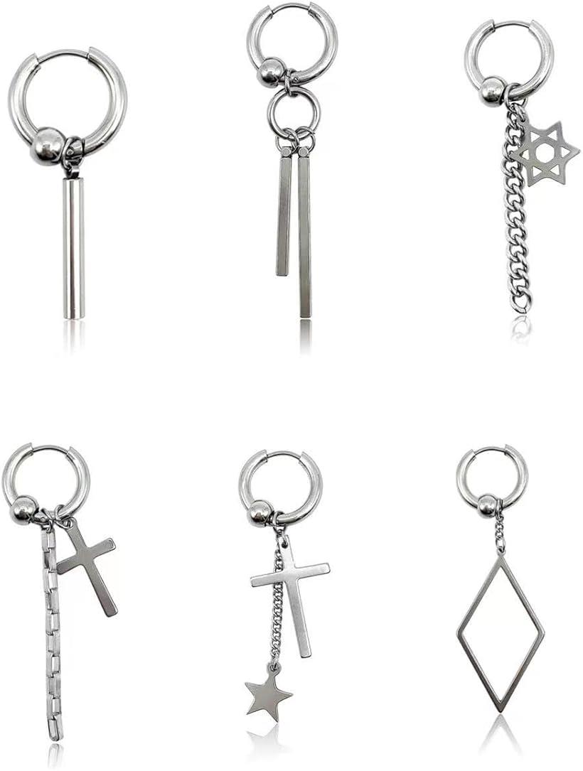 ピアス リング ボール付き 6点セット 韓国アクセサリー 十字架 クロス スティック チェーン (steel)