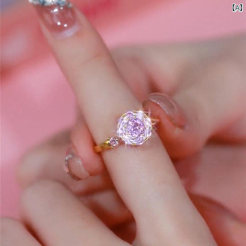 リング 高級 感が あり、 TikTokで トレンドの、 エレガントで 豪華、そして ファッショナブルな 回転 ピンクの リングです。 ダイヤモンドが ぎっしりと あしらわれ、 オープン デザインで とても キラキラ 輝き、 女性に 最適です。