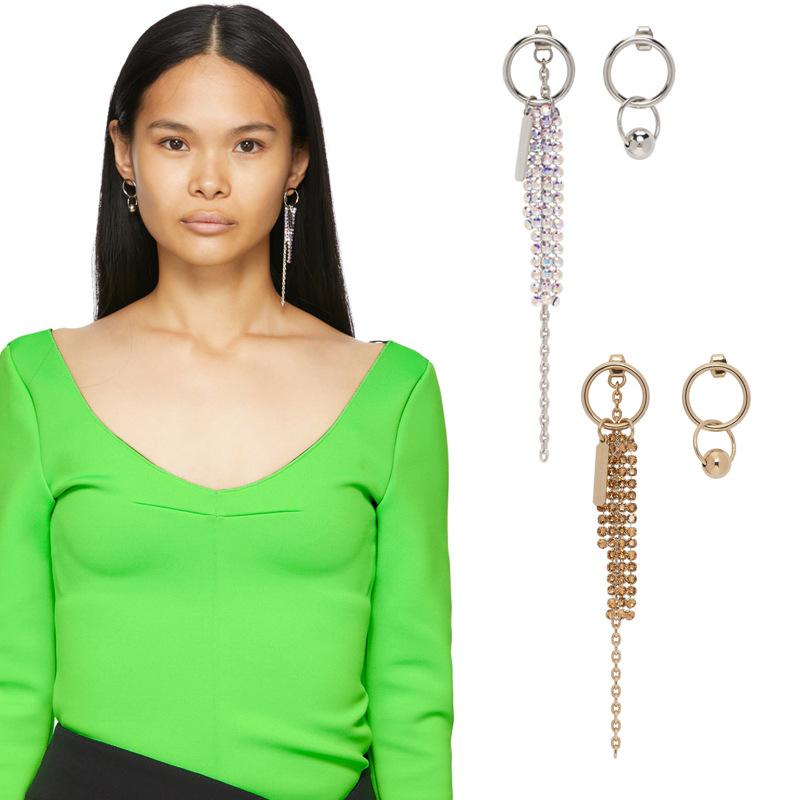 2ピアス レディース 銅 電気メッキ加工 ジルコニア ラインストーン フリンジ アシンメトリー 幾何学 軽 золотой