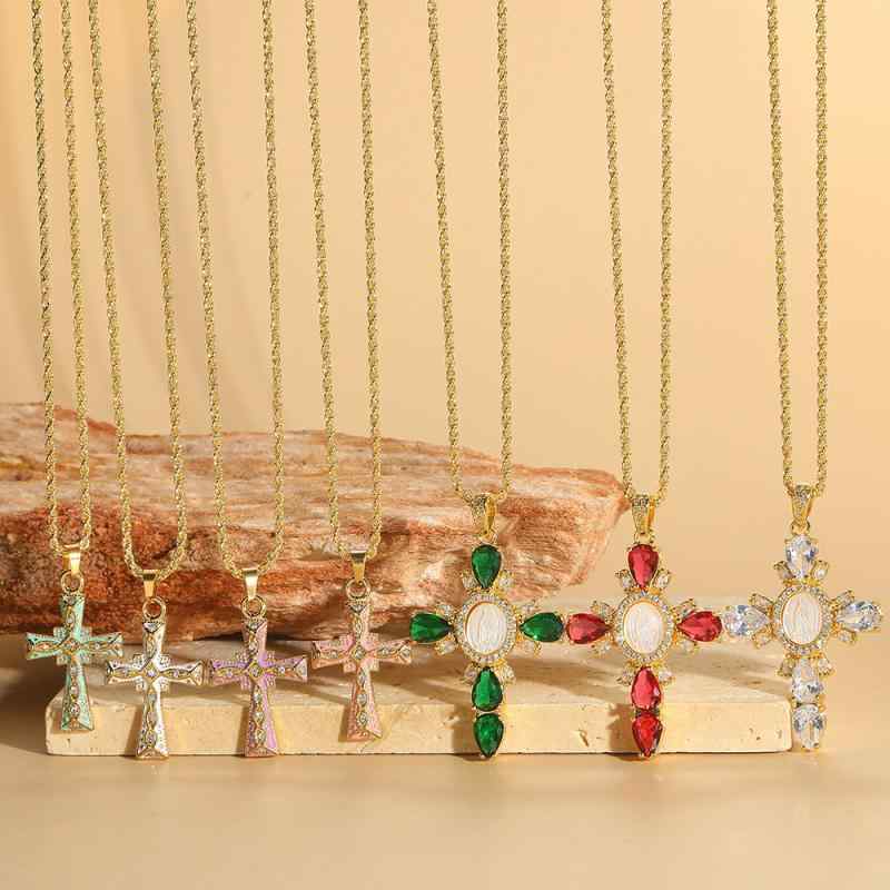 ネックレス レディース 個性派 デザイン 十字架 クロスモチーフ ペンダント 鎖骨チェーン レトロ ヴィンテージ 真鍮製 ゴールドカラー ジルコニア 普段使い オフィス カジュアル 欧米風 トレンド