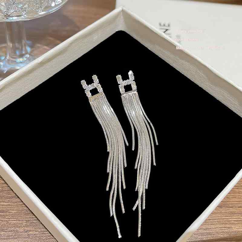 ピアス レディース ジルコニア アルファベット タッセル シルバー 電気メッキ加工 幾何学 イヤリング 個性的 かわいい おしゃれ トレンド アクセサリー