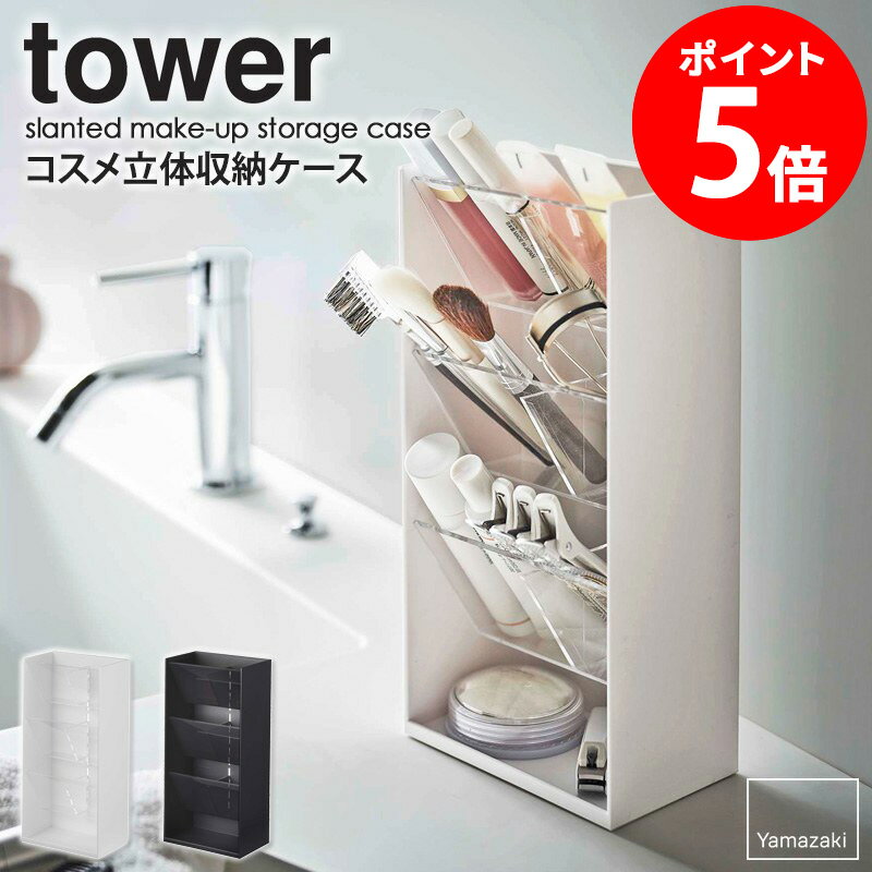 【ランキング3位】 コスメ収納ケース tower タワー 山崎実業 正規取扱店メイクスタンド コスメケース スリム メイク道具 小物入れ メイクボックス コスメ 化粧品 収納 マニキュア アイシャドウ 香水 ケース トレイ ドレッサー ホワイト ブラック 白 5601 5602 casa