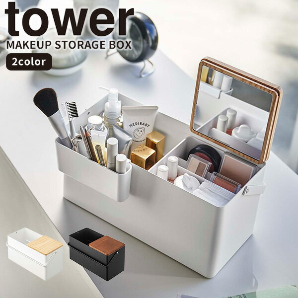 メイク収納ケース [メイクボックス タワー] tower [山崎実業] コスメ収納 メイク道具 化粧品 メイク用品 収納 ふた付き 鏡付き 仕切り 大容量 大きい 持ち運び ホワイト ブラック 白 黒 5453 5454【フラリア】【ポイント5倍】