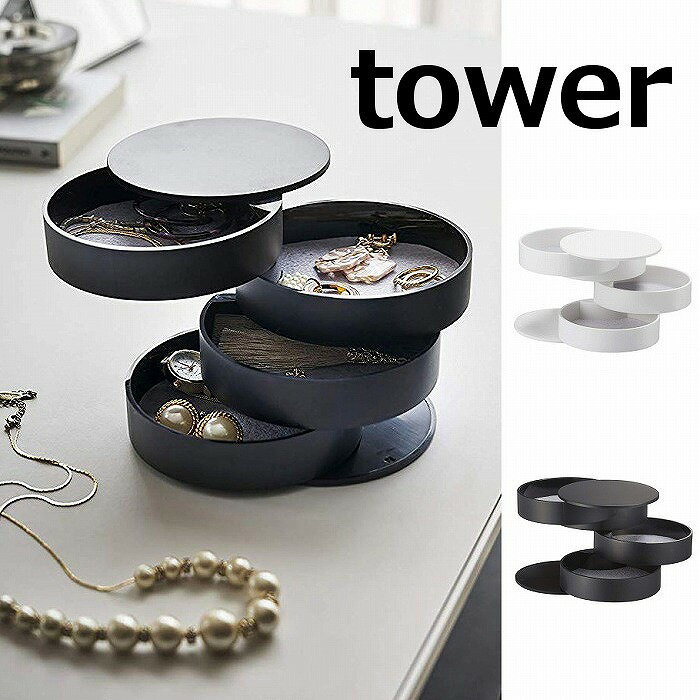 アクセサリートレー 4段 タワー 回転式トレー ホワイト ブラック tower 4068 4069 北欧 収納 おしゃれ かわいい 収納 アクセサリースタンド キーホルダー 玄関 シンプル 鍵 カギ 鍵かけ 鍵収納 下駄箱 リビング 山崎実業 yamazaki 【ギフト】【ポイント5倍】