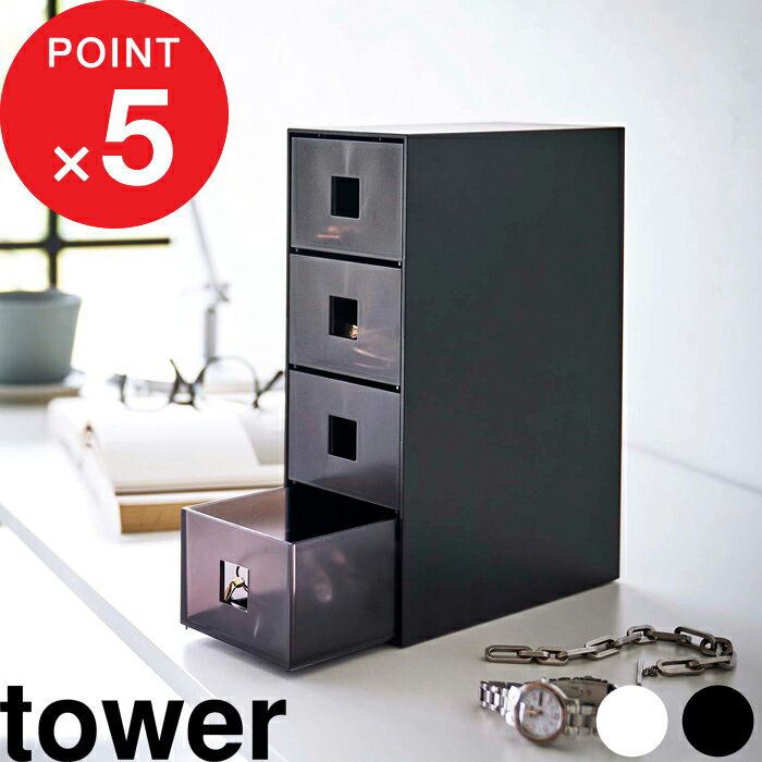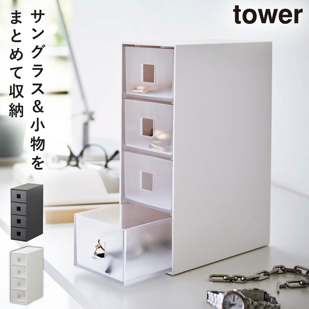 【特典付】 [ サングラス&小物収納ケース タワー ]山崎実業 tower 収納ケース 引き出し 4段 収納ボックス 眼鏡 収納 サングラス 腕時計 アクセサリー 小物収納 小物入れ おしゃれ モノトーン シンプル yamazaki ブラック ホワイト 6133 6134 【ポイント5倍 送料無料】