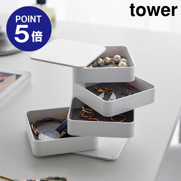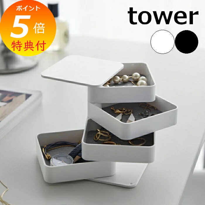 【特典付】 [ アクセサリートレー タワー 4段 スクエア ]山崎実業 tower アクセサリーケース アクセサリー 収納 トレイ アクセサリー入れ ケース 指輪 コンパクト 回転 おしゃれ モノトーン yamazaki 公式 ブラック ホワイト 1753 1754 【ポイント5倍 送料無料】