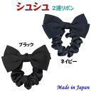 完全日本製 ヘアアクセサリー シュシュ ダブルリボン ブラックorネイビー 大人 子供 お母様 説明会 運動会 行事 幼稚園 保育園 小学校 通園 通学 通勤 旅行