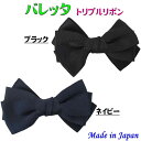 完全日本製 ヘアアクセサリー バレッタ トリプルリボン ブラックorネイビー 大人 子供 お母様 説明会 運動会 行事 幼稚園 保育園 小学校 通園 通学 通勤 旅行