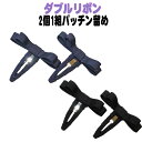 送料無料 ダブルリボンパッチン留め 2個1組 ネイビー ブラック ヘアアクセサリー 大人 子供 お母様 説明会 運動会 行事 幼稚園 保育園 小学校 通園 通学 通勤 旅行