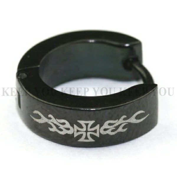 【メール便対応】トライバル&アイアンクロス メンズ ピアス フープ シンプル【メンズ ピアス レディース ステンレス フープピアス 黒色 ノンアレルギー ボディピアス】spb-00100 ┃