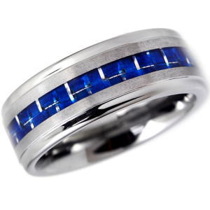 ■ノンブランド 【 リング 指輪 】 └【タイプ】 レアメタル タングステンリング Tungsten 指輪 カーボン素材 カラー ペア アレルギーフリー バレンタイン【素材:タングステン/カーボン】[要確認]メーカー取寄せ時2-4日/メーカー欠品時の納期1ヶ月以上の場合キャンセル扱い(在庫、詳細納期は要問合せ) ★タングステンに鮮やかなブルーのカーボンラインが入ったリング。 (幅8mm、厚み2.3mm、9-27号) センター全周にブルーカーボンを埋め込んだファッショナブルなリング。素材もさることながらタングステンとブルーバンドとのカラーコントラストもインパクト大!
