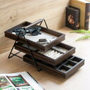 お気に入りを見せつつ、まとめるumbraTerrace ジュエリートレーブラウンの木製トレーにブラックのワイヤーフレームを組み合わせたジュエリートレー。シックで上質な雰囲気を醸し出すデザインは、お気に入りのアクセサリーを見せながら収納するツールとして最適です。3つのトレーはそれぞれスライドさせたり、取り外すことが可能。アクセサリーを取りやすく、片付けやすい仕様です。中段、下段にはピアスや指輪など細々としたアクセサリーを、上段には時計やメガネなど少し大きさのある物を収納できます。アクセサリーと一緒にコスメを収納して棚やデスク上に置けばメイクスペースがすっきり。整ったスペースなら身支度をするのが楽しくなります。ワイヤーフレームには木製のハンドルが付いているので持ち運びが簡単です。ジュエリートレーのサイズは幅25.4cm、奥行17.4cmと大きすぎない程よいサイズ。棚やテーブル上のちょっとした空きスペースに置くことができます。3つのトレーにはそれぞれ異なる仕切りが付いています。種類ごとに分けて収納することができるので、アクセサリーをきれいに保管することが可能です。加えてトレー内にはリネンの生地が貼られており、繊細なアクセサリーを安心して入れることができます。ワイヤーフレームの底には滑り止めが付いています。安定して置くことができるのはもちろん、置いた場所の傷防止にも。DETAILBRANDUmbra(アンブラ)Umbraはカナダ・トロント生まれのデザインブランド。家庭のあらゆる部屋にモダンでカジュアルなデザインを提供するというビジョンを基に、日常に新鮮な驚きをもたらすデザイン製品を提供しています。SPECサイズ約 幅25.4×奥行17.4×高さ20(cm)内容量1個材質ウッド(桐材)、スチール、リネン生産国中国製備考※お客様のお使いのモニター設定、お部屋の照明等により色味が実際と異なる場合があります。キャンセル・返品区分小型商品CAMPAIGN関連キーワード: アクセサリー ケース トレイ シンプル ナチュラル コンパクト おしゃれ 黒 ブラック インテリア ウッド 収納 ピアス イヤリング 指輪 コスメ ネックレス 化粧品 アクセサリーケース アクセサリーボックス 木目 机の上 デスク上 部屋 リビング クローゼット 寝室 洗面所 洗面台 ディスプレイ 一人暮らし プレゼント ギフト 女性 男性 誕生日 バレンタイン ホワイトデー クリスマス お祝い