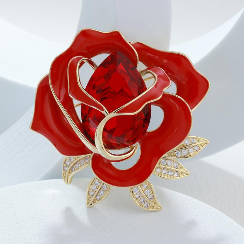 ブローチ レディース コサージュ ピン 胸飾り 花 フラワー クリスタル 赤 エナメル レトロ ヴィンテージ風風 アンティーク調 電気メッキ 銅製 アクセサリー フォーマル 結婚式 入学式 卒業式 華やか 高級感 かわいい