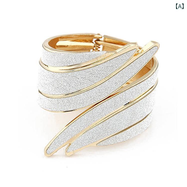 ブレスレット レディース 欧米風 ファッション パンク ロック 大胆 個性派 エンジェルウィング 天使の羽根 3連風 ワイド幅 オープンバングル メタル製 電気メッキ加工 光沢感 シルバー 秋冬 カジュアル デイリー