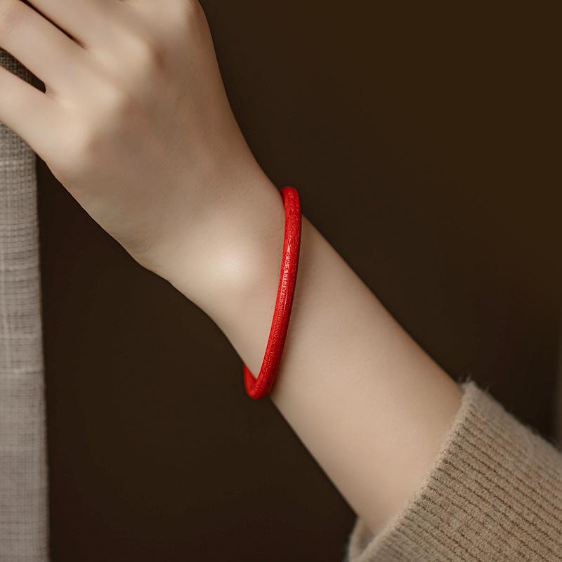 ブレスレット レディース 女性用 レッド 赤色 般若心経 バングル レトロ 細身