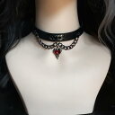シンプル 短め カジュアル おしゃれ Y2K チョーカー ネックレス レディース レトロ ダーク レッド ハートチョーカー ネックレス ホット ガール レザーネックレス 鎖骨 チェーン サブカルチャー アクセサリー