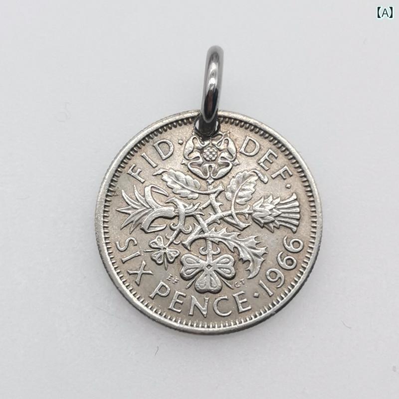 ネックレス メンズ 英国製 6 ペンス ラッキーコイン コインペンダント レトロ コイン ネックレス キー ペンダント アクセサリー ラッキー