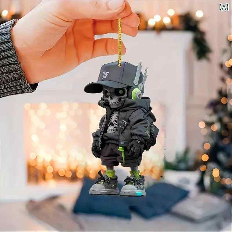 キーホルダー アクセサリー メタル アクリル スカル クール フラット ペンダント デコレーション ハロウィン 車 装飾 キーホルダー 男の子