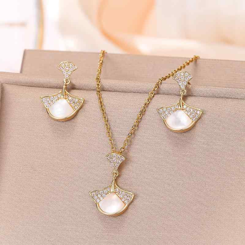 ジュエリー レディース 高品質 扇型 ファッション ネックレス ピアス 2点セット シンプル エレガント 上品 中東風 白蝶貝 シェル ジルコニア ゴールド シルバー