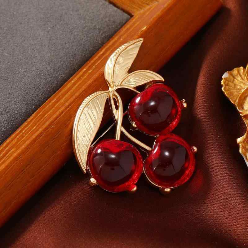 ブローチ レディース 男女兼用 谷間隠し 胸元カバー 洋服固定 マナー対策 ゼリー樹脂 さくらんぼ チェリー フルーツ シンプル レトロ 電気メッキ加工 亜鉛合金 ピン コサージュ ファッション小物 アクセサリー