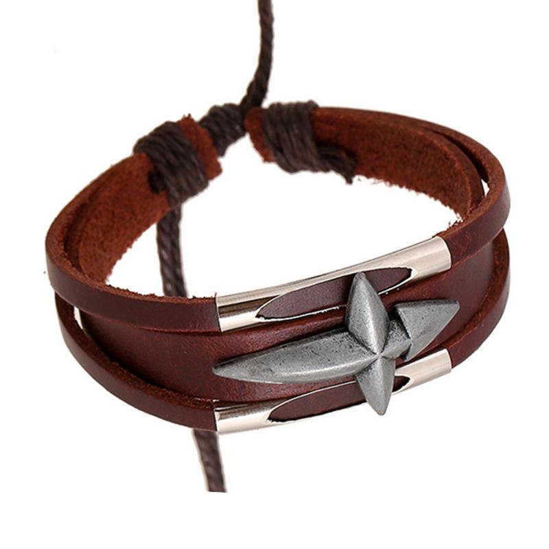 ブレスレット 男女兼用 ユニセックス 欧米風 本革 牛革 クロス デザイン ハンドメイド ブラウン カジュアル バングル プレゼント ギフト 普段使い ファッション アクセサリー