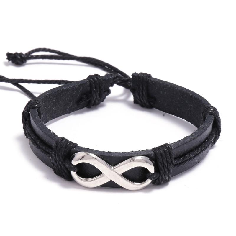 ブレスレット 男女兼用 おしゃれ 欧米スタイル レトロ ヴィンテージ エイト 本革 牛革 レザー 合金 アクセサリー 普段使い ブラック ジオメトリック