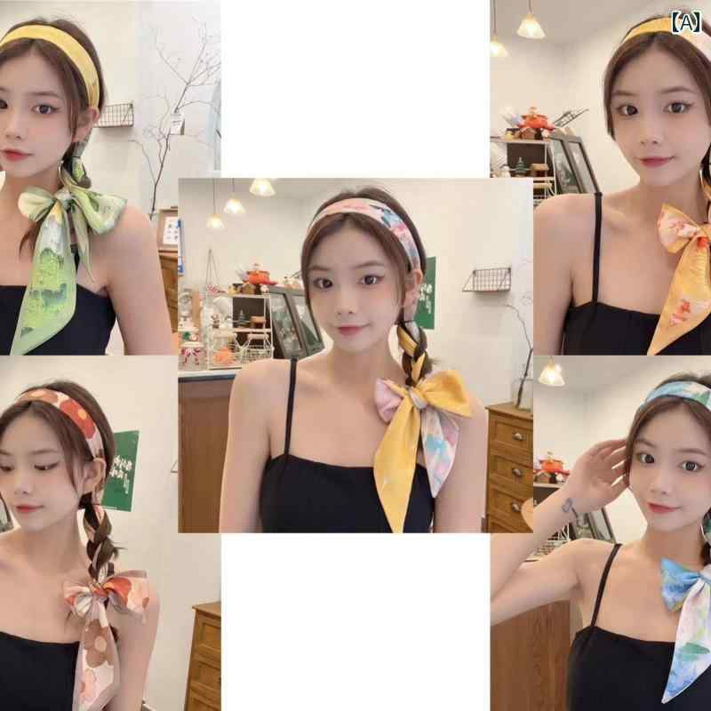 ヘアアクセサリー 油絵 フランスの レトロな エクストラ ロング シルクスカーフ ヘッド バンド 装飾 両面 スカーフ 結び バッグ リボン 細い 細い ストリップ アクセサリー ストリーマー