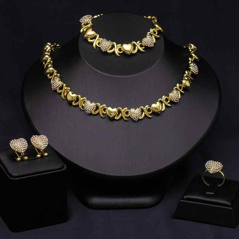 アクセサリー レディース ハート ネックレス イヤリング ブレスレット リング 4点セット ラインストーン エレガント ジュエリー ファッション 通勤用 ギフト
