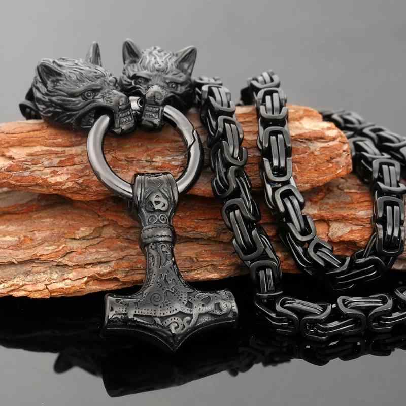 ネックレス メンズ 北欧神話 バイキング 狼 雷神ハンマー ペンダント チタン鋼 アニマル 40cm 50cm 60cm 70cm 80cm