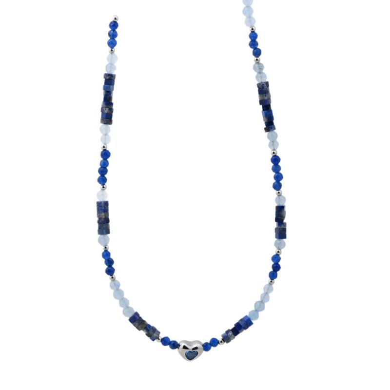ネックレス ユニセックス 男女兼用 ラピスラズリ アクアマリン ブルー ハート リゾート 普段使い U字型 ショートネックレス