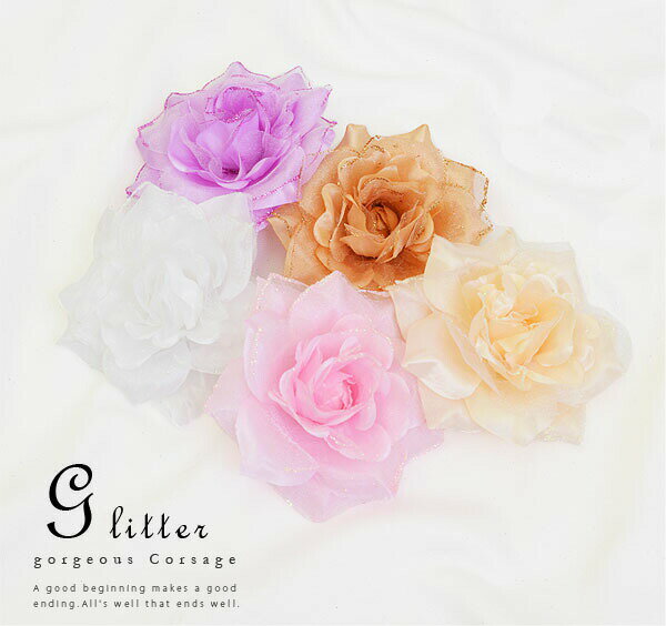 グリッターゴージャスコサージュ(全5色)【フラワー アクセサリー アクセ ヘアアクセ ラメ 成人式 パーティー 結婚式 女子 花 2次会 卒業式 フォーマル】クリスマス