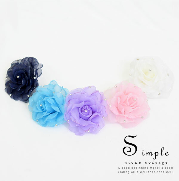 シンプルストーンコサージュ【フラワー アクセサリー アクセ ヘアアクセ ラメ 成人式 パーティー 結婚式 女子 花 2次会 卒業式 フォーマル 】クリスマス
