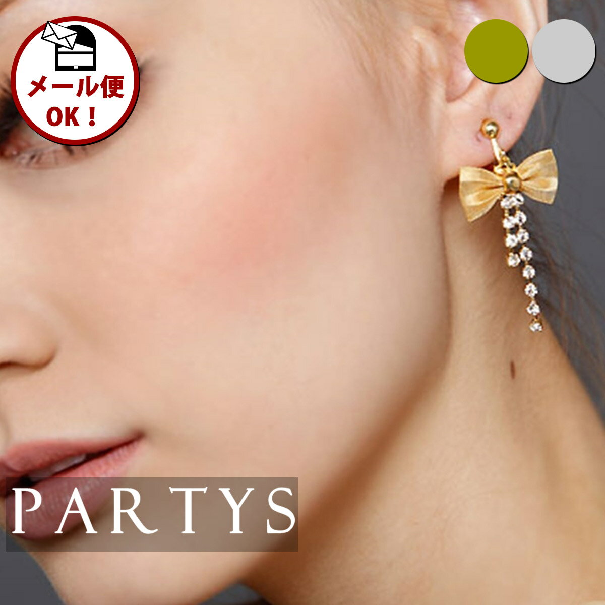 韓国製 [ メール便 ][ 宅配便 あす楽 ][ ジュエリー ] リボン ラインストーン ピアス | PARTYS ドレスショップ パーティーズ レディース キラキラ 大人 即日発送 他と被らない 結婚式 パーティー オケージョン シンプル プレゼント ぴあす