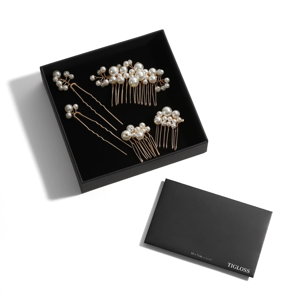 [ティグロス] TIGLOSS 美容師監修 髪飾り ヘッドドレス ヘアアクセサリー ヘアピン パール コーム ウェディング 専用BOX付