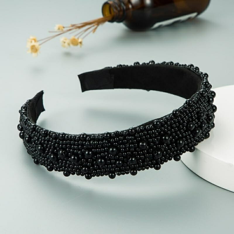 カチューシャ 髪飾り レディース クリエイティブフルパールワイドエッジヘアバンドヘッドバンドブライダルウェディングヘア ヘアアクセサリー (色 : Black Size : One size)