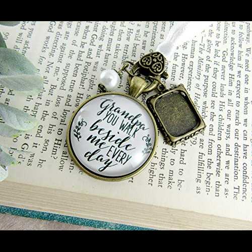祖父のウェディングブーケチャームおじいちゃんあなたは私のそばを歩いているフォトフレームメモリアルホワイト思い出ジュエリーブライダルフラワー用 Gutsy Goodness Grandfather Wedding Bouquet Charm Grandpa You Walk Beside Me Photo Frame Memorial Wh
