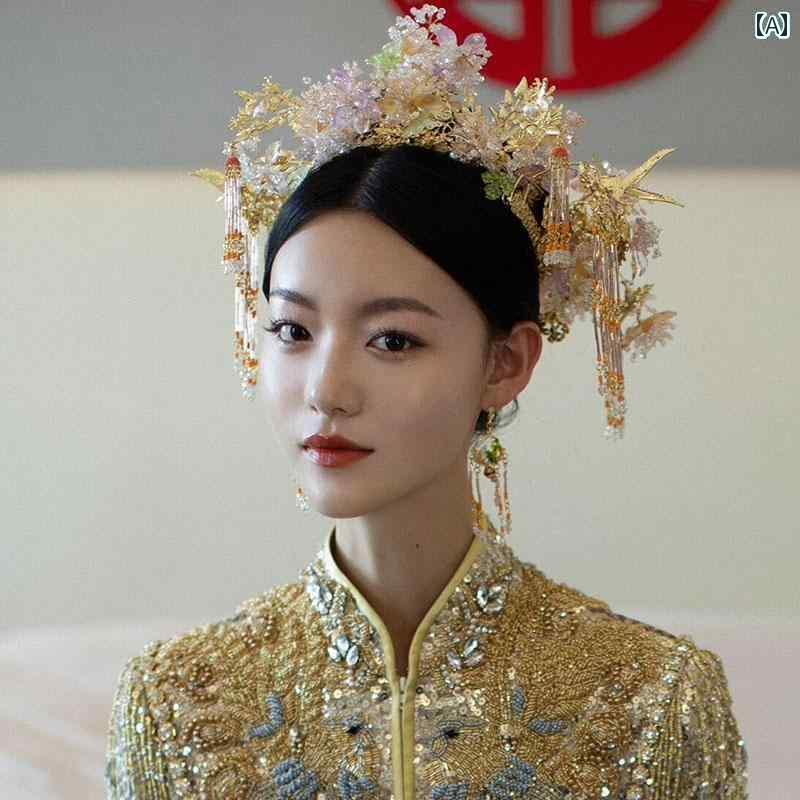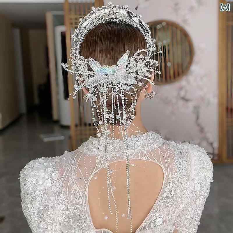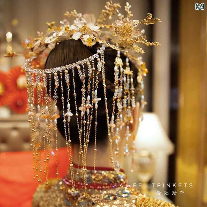 ブライダル ヘッドアクセサリー 結婚式 ウェディング パーティー 婦 花嫁 舞台 小道具 コスプレ ヘッド ドレス チャイナ風 タッセル フェニックス クラウン 大気 レトロ 衣装 ヘア アクセサリー スーツ ドラゴン フェニックス ガウン アクセサリー