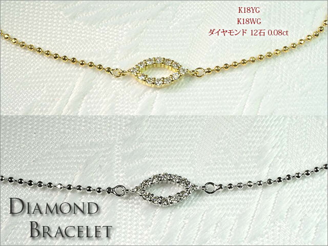 K18YG WG PG マーキス型 ダイヤモンド ブレスレット ジュエリー アクセサリー レディース イエローゴールド ホワイトゴールド ピンクゴールド ダイアモンド 4月誕生石 送料無料 品質保証書 プレゼント レディース アクセサリー ジュエリー 雫 涙